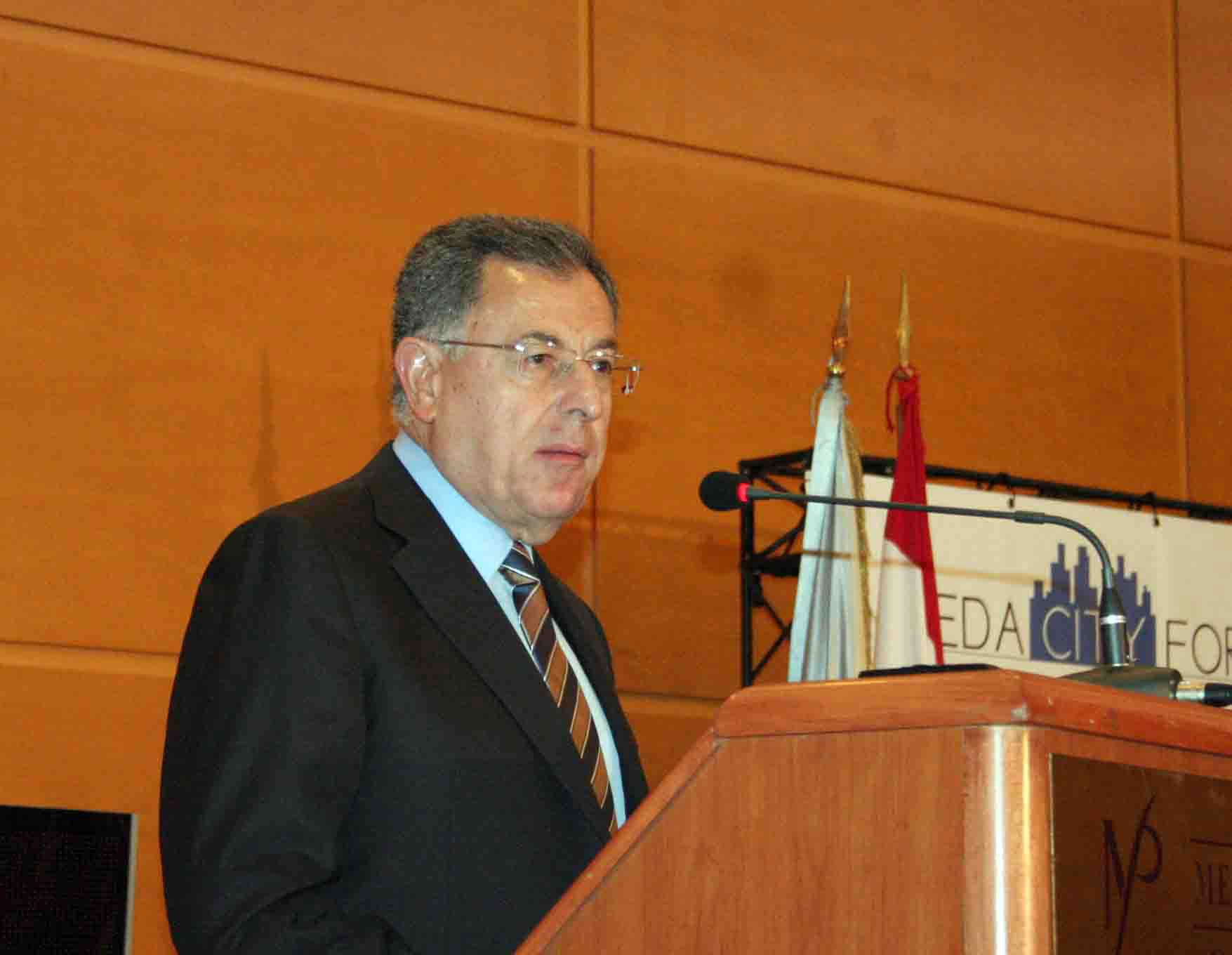 إنكم تبحثون في مؤتمركم هذا اليوم وغداً في جملة المتغيرات والتطورات التي تشهدها مدن المتوسط وفي أدوارها الاقتصادية والاجتماعية والثقافية، وفي التحديات التي سوف تشهدها هذه المدن في العقود القادمة على المستويات الاقتصادية والاجتماعية والأمنية والبيئية، وفي كيفية الانطلاق بخُطىً ثابتةٍ نحو المستقبل بما يؤمن لهذه المدن ولسكانها من جهة أولى التلاؤم مع هذه المتغيرات، ومن جهة ثانية ضمان النمو المستدام والتقدم والاستقرار. وقد تكون لتجربة مدينة بيروت في نهوضها واستعادة وتطوير دورها قيمةٌ وعبرةٌ في هذا الإطار.