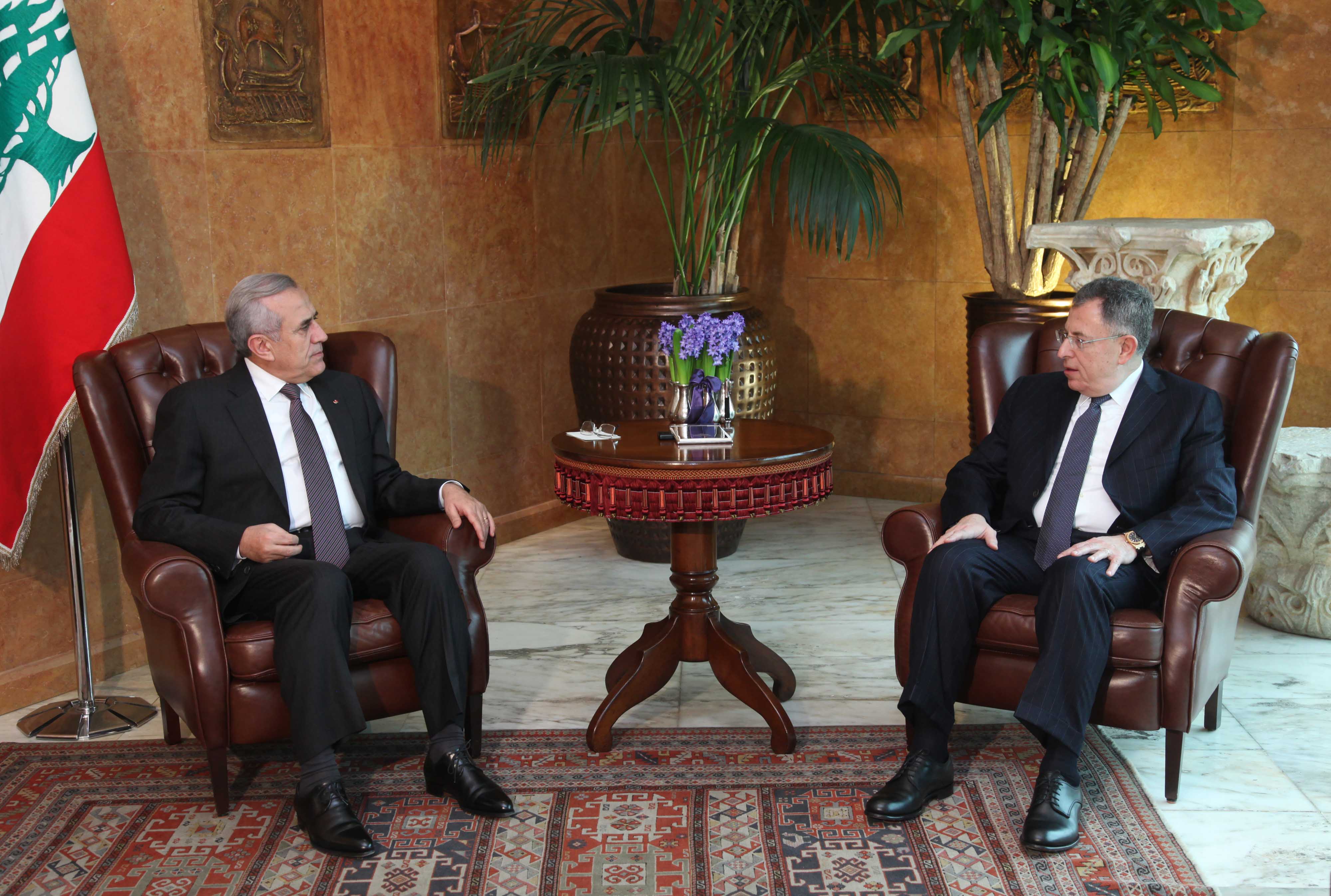 استقبل رئيس الجمهورية ميشال سليمان ظهر اليوم رئيس كتلة المستقبل النيابية الرئيس فؤاد السنيورة وكان الاجتماع مناسبة لاستعراض مختلف التطورات في لبنان والمنطقة من مختلف جوانبها وكانت موجهات النظر متطابقة في اغلب المواضيع التي شملها النقاش .
