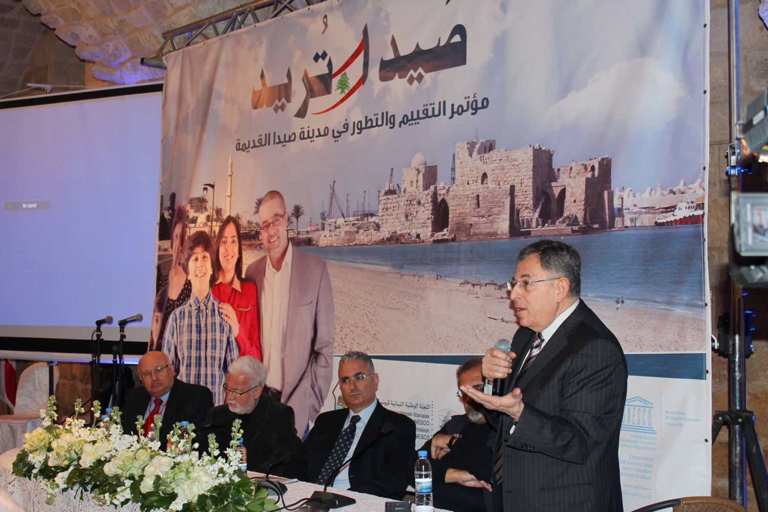 وشارك في حفل الافتتاح : الرئيس فؤاد السنيورة والنائب بهية الحريري ورئيس بلدية صيدا المهندس محمد السعودي وممثل المكتب الاقليمي للأونيسكو مسؤول برامج قطاع الثقافة المهندس جوزيف كريدي ، وحضره : رئيس مجلس الانماء والاعمار المهندس نبيل الجسر ، ممثل المطران ايلي حداد الأب جهاد فرنسيس ، ممثل محافظ الجنوب نقولا بوضاهر رئيسة دائرة البلديات في المحافظة هويدا الترك ، امين عام اللجنة الوطنية لليونسكو سلوى بعاصيري السنيورة ، منسق عام تيار المستقبل في الجنوب الدكتور ناصر حمود ، المسؤول التنظيمي للجماعة الاسلامية في الجنوب حسن ابو زيد ، مدير مكتب مخابرات الجيش في صيدا العقيد ممدوح صعب،رئيس مجلس ادارة السوق الحرة محمد زيدان، رئيس غرفة التجارة والصناعة والزراعة في صيدا والجنوب محمد حسن صالح ورئيس جمعية تجار صيدا وضواحيها علي الشريف والرئيسان السابقان لمدينة صيدا المهندس هلال قبرصلي والمهندس أحمد كلش ، وممثلون عن محتلف قطاعات المدينة وهئياتها الأهلية والإجتماعية والتربوية والتراثية والشبابية والنقابية ورؤساء بلديات وفاعليات المنطقة ...فيما تغيب الرئيس السابق لبلدية صيدا الدكتور عبد الرحمن البزري عن المؤتمر رغم ان اسمه كان مدرجا ضمن برنامج المتحدثين في الجلسة الثانية .