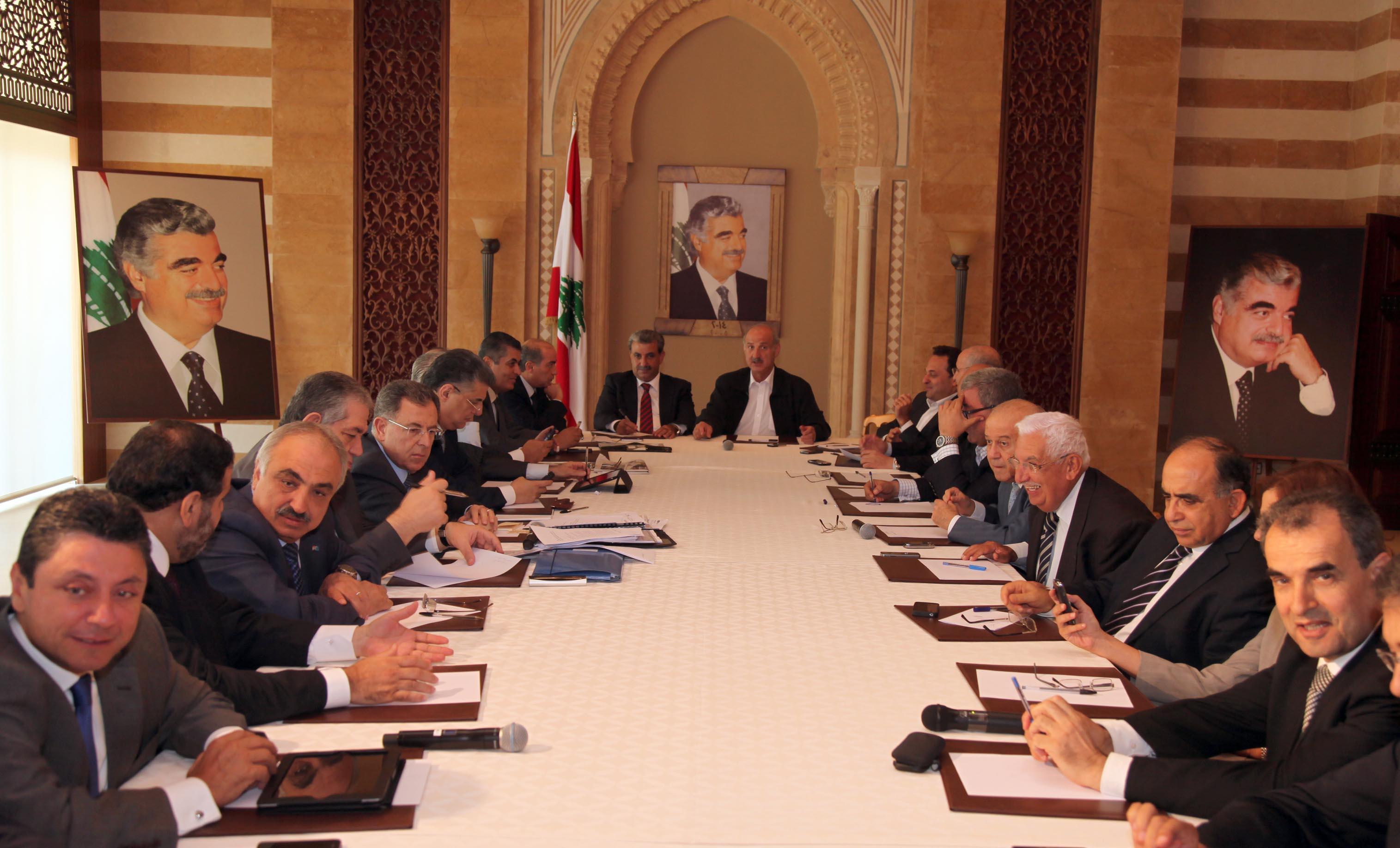 ثانياً: استعرضت الكتلة تطورات الايام الماضية المتسارعة من رفع للاعتصام في صيدا وتوقف لاضراب الاساتذة والمياومين في الكهرباء، مما عمم مسحة من الايجابية، بالرغم مما شاب ذلك من التباس فيما خص توقف الإضراب، سرعان ما تبخرت امام قطع متجدد لطريق المطار من قبل اهالي المخطوفين في سوريا.