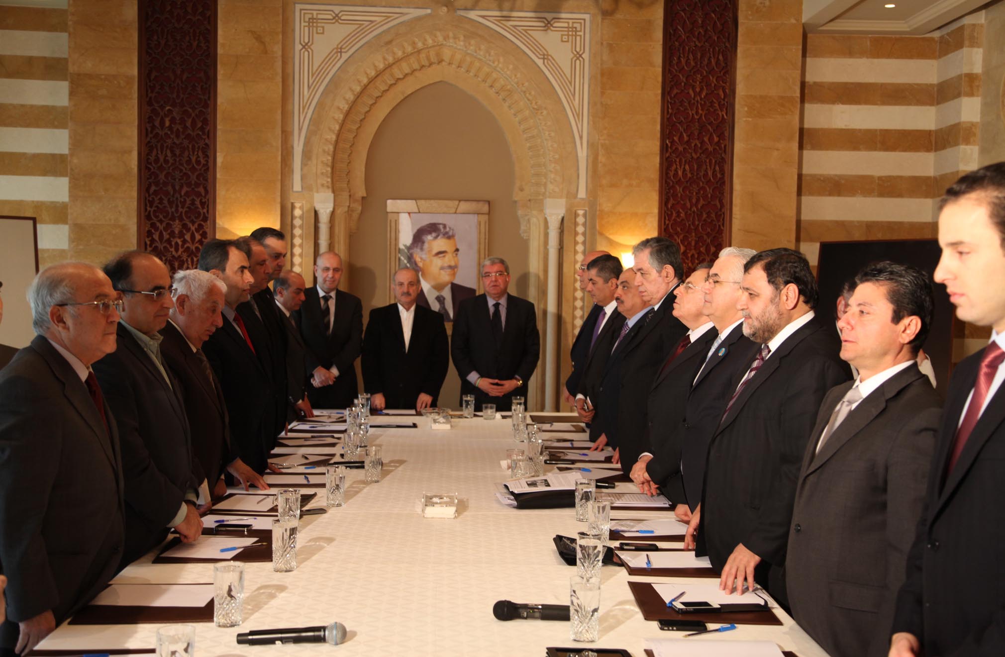 ان الموقف الخطير الذي اعلنه وزير الخارجية عدنان منصور في اجتماعات مجلس الجامعة العربية المتنكّر للإجماع العربي ولسياسة النأي بالنفس والذي يدافع فيه عن النظام السوري لا تكون مواجهته أو التصدي له عبر كلام بين الجدران، بل يكون عبر تأكيد الموقف الرسمي اللبناني والمبادرة بخطوات رسمية وخطية تجاه جامعة الدول العربية لكي لا يسجل الموقف المنفرد والشخصي لوزير الخارجية على انه موقف لبنان الرسمي. من هنا فان الكتلة تناشد رئيس الجمهورية ميشال سليمان التصرف ازاء هذا الموضوع لقطع الطريق على اي تفاعلات يمكن ان تصيب لبنان نتيجة مشاركة حزب الله القتالية في سوريا ونتيجة موقف الوزير منصور المرفوض والمستنكر والمستهجن.