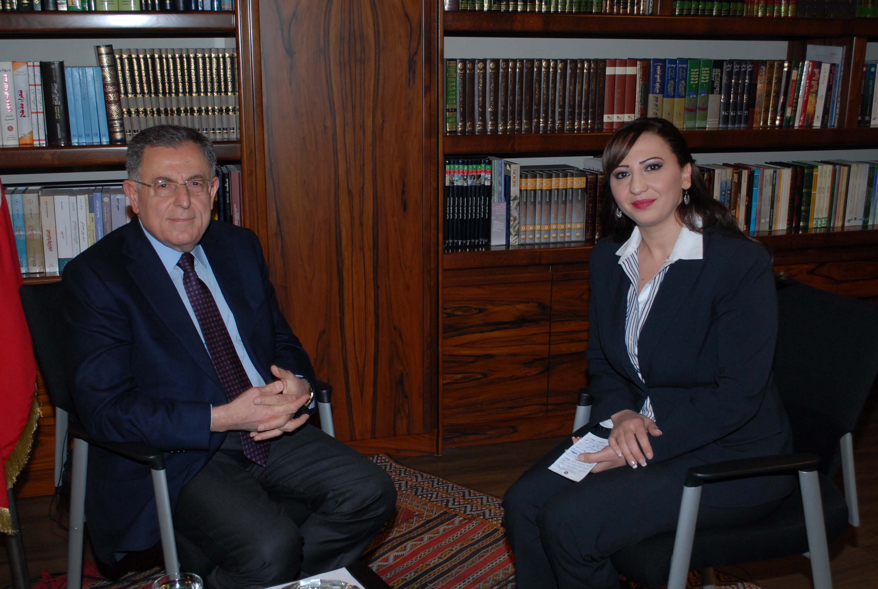 حديثا مطولا مع رئيس كتلة المستقبل النيابية الرئيس فؤاد السنيورة وقد بث مساء امس وقد شدد الرئيس السنيورة في الحديث على اهمية استعادة المبادرة من قبل العرب واعادة طرح المبادرة العربية للسلام وفي مايلي نص الحديث :
