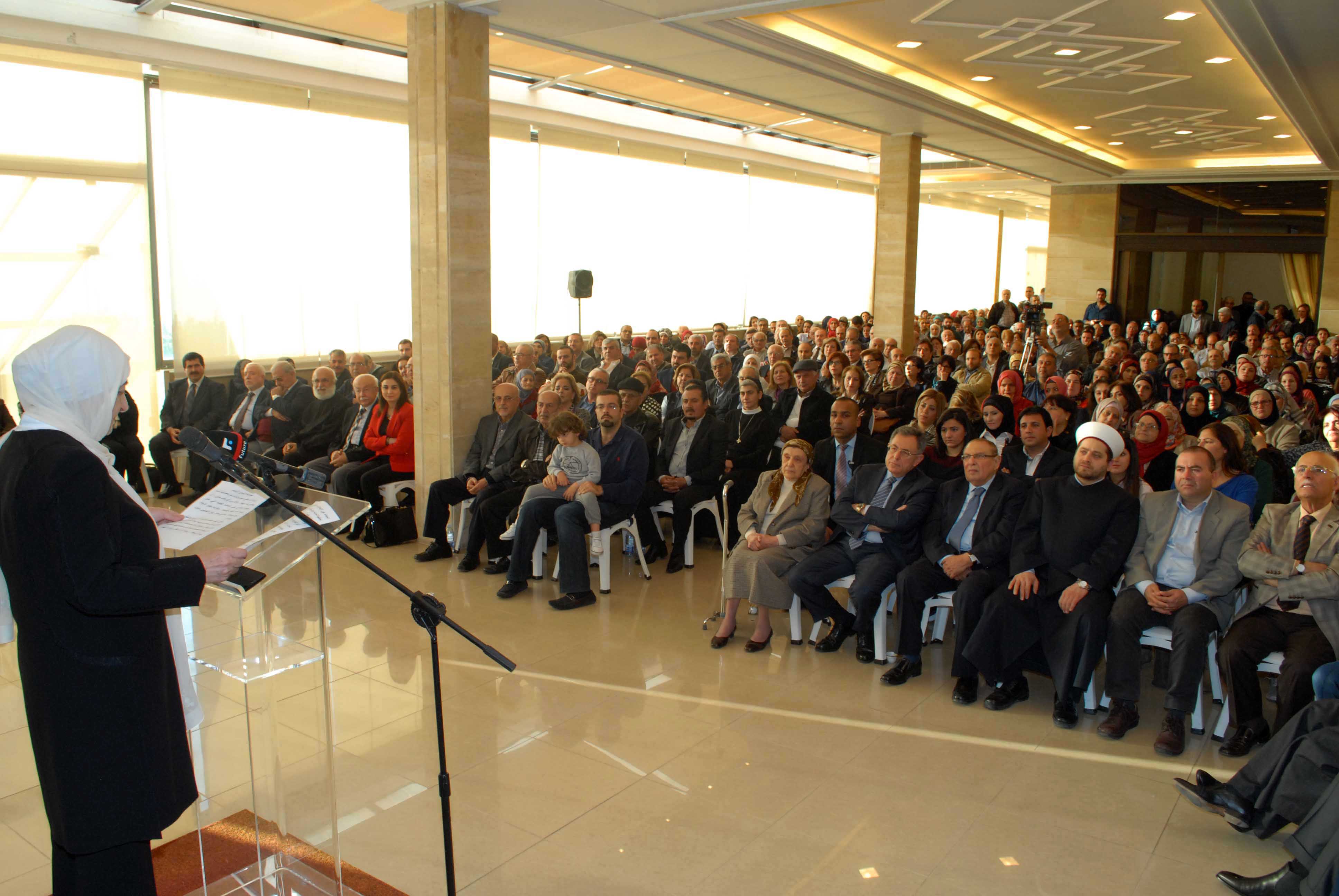 واضافت:وإنّنا اليوم نجدّد وفاءنا لأخوّتهم الصادقة وفي مقدّمتهم مملكة الخير والعطاء، المملكة العربية السعودية بقيادة خادم الحرمين الشريفين سلمان بن عبد العزيز حفظه الله .. وسنبقى كما كنّا دائماً في مدينتنا نحترم التّنوّع الذي تتميّز به مدينتنا والجوار، وسنعمل دائماً على الحفاظ على الإنجازات والمكتسبات الإنمائية التي تحقّقها المدينة دون توقف على الدوام .. وإنّنا نتطلّع إلى أن يقدّم الجميع مصلحة لبنان والشعب اللبناني على كلّ ما عداها .. خصوصاً وأنّ آثار الحروب التي تدور في الجوار ترمي بأعبائها على لبنان ما يفوق طاقاته على تحمّل نتائجها واحتياجاتها.. في حين أنّ الدول الكبرى تتهرّب من تحمّل أعباء اللجوء وضروراته الإنسانية والعملية ..