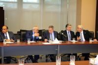 في بداية الاجتماع وضع الرئيس فؤاد السنيورة نواب الكتلة في أجواء جولته الأميركية حيث لبّى دعوة جامعة تافتس (كلية فلتشر للشؤون الدبلوماسية) في بوسطن لإلقاء محاضرة عن التحديات والفرص في الشرق الأوسط، كما أنه ألقى محاضرة أخرى في واشنطن في مركز كارنيغي وذلك خلال زيارته واشنطن وفي لقاءاته عدداً من المسؤولين في الإدارة الاميركية وفي مجلسي النواب والشيوخ حيث شدّد الرئيس السنيورة على ضرورة الوقوف إلى جانب لبنان في ما يتعرض له من مصاعب ولاسيما على صعيد الضغوط الأمنية والاقتصادية والاجتماعية المتزايدة التي يرتّبها وجود قرابة مليون ونصف مليون لاجئ سوري في لبنان. ودعا الرئيس السنيورة إلى ضرورة الدفع قدماً في مسار جنيف لإيجاد حل نهائي للأزمة والمحنة السورية وهو الأمر الذي يمثل ايضاً الحل المستدام لمشكلة اللاجئين السوريين ويضمن عودتهم جميعاً إلى وطنهم. كما شرح الرئيس السنيورة مخاطر استمرار الفراغ الرئاسي وتأثير ذلك على عمل المؤسسات الدستورية وعلى الدولة اللبنانية وعلى الوضعين الاقتصادي والاجتماعي فيها.