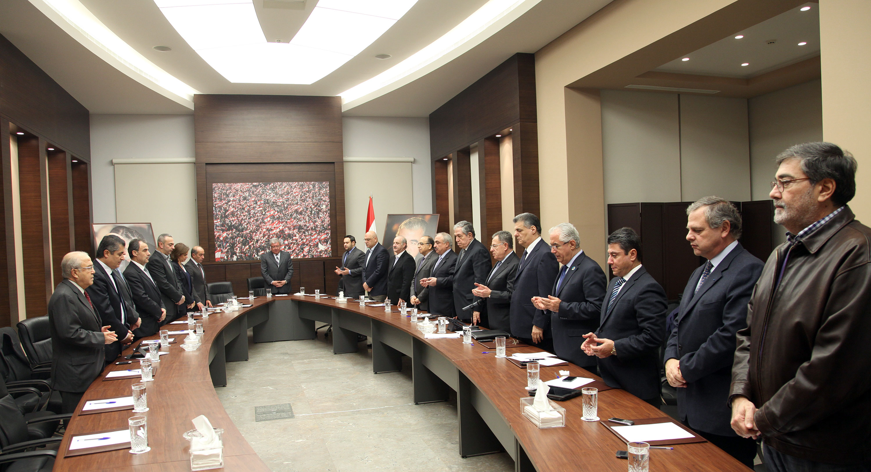 ثالثاً:تكرر الكتلة مطالبة الرئيسين ميشال سليمان وتمام سلام بتشكيل الحكومة الجديدة من غير الحزبيين لكي تفتح الطرق أمام الانفراجات المطلوبة وتُفسح في المجال امامها للانصراف الى معالجة مشكلات لبنان الامنية والاقتصادية والاجتماعية المتفاقمة والملحة، على ان تحال باقي الملفات المتنازع عليها الى طاولة الحوار الوطني. والكتلة في هذا المجال تثمن المواقف التي تصدر عن رئيس الجمهورية والتي كان اخرها ما قاله في احتفال اعادة افتتاح مقر غرفة التجارة والصناعة والزراعة في بيروت.