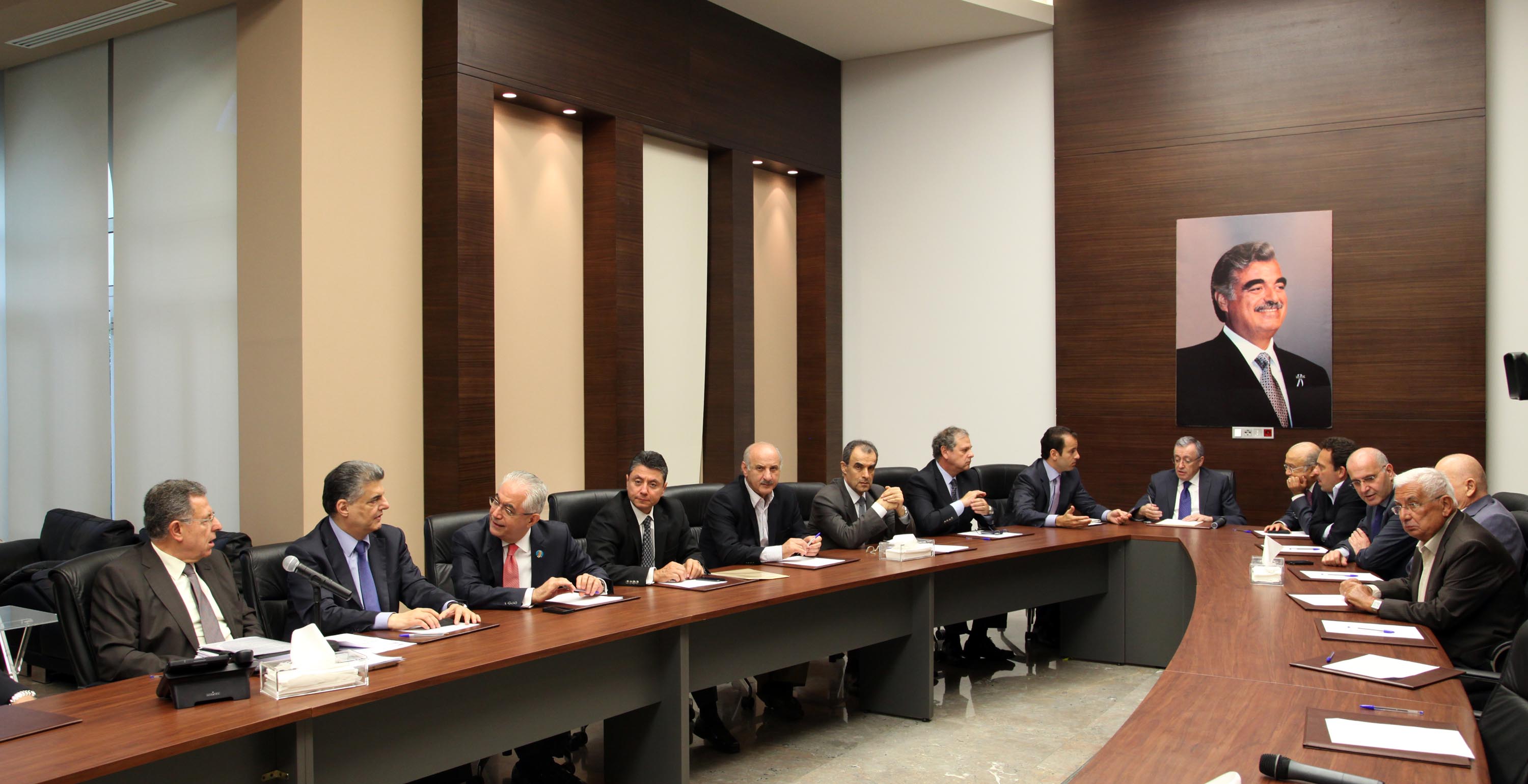 انطلاقاً من هذا التوجه، فقد وضع الرئيس السنيورة أعضاء الكتلة في أجواء الاجتماع مع الرئيس امين الجميل وبحث معهم آفاق انطلاق المشاورات مع قيادات قوى الرابع عشر من آذار للتشاور في المخارج الممكنة لتجاوز مرحلة الشغور الرئاسي.