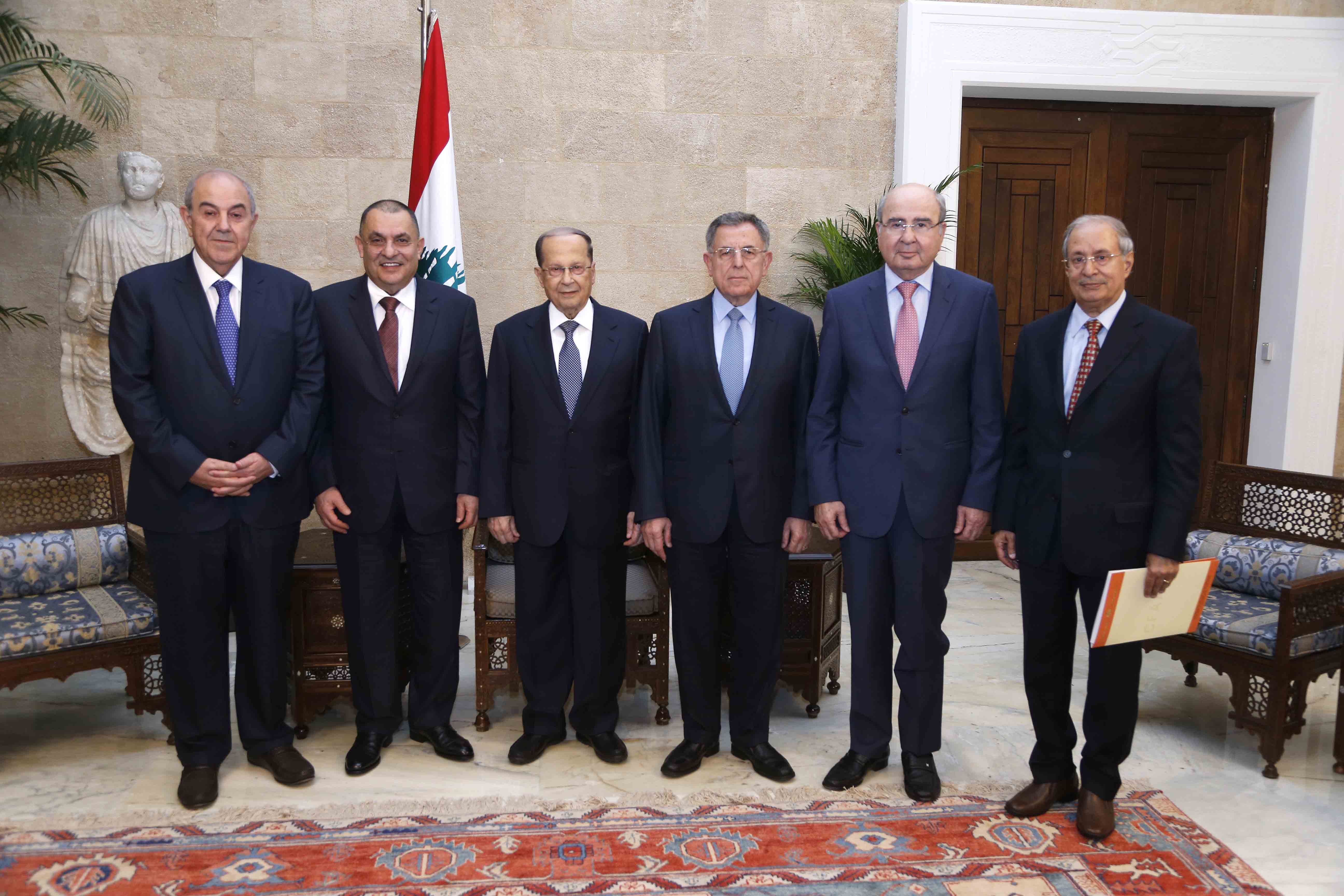 زار وفد مجلس العلاقات العربية والدولية برئاسة الصقر، وعضوية نائب الرئيس العراقي أياد علاوي، الرئيس فؤاد السنيورة، رئيس الحكومة الأردنية السابق طاهر المصري والسفير محمد الصلاّل، رئيس الجمهورية العماد ميشال عون في قصر بعبدا أمس، وقدم له التهنئة بانتخابه، متمنياً له التوفيق في مهمته الجديدة.